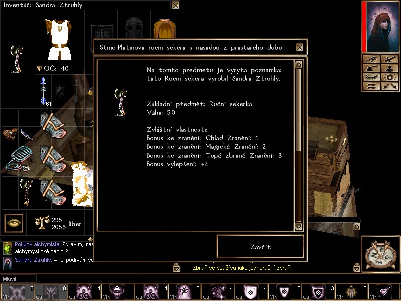 monstera wrote: kucik wrote: Muzes prilozit screen? Jo, ono se tam neuvádějí základní charakteristiky zbraně, jako jsou uvedeny u zbraní z obchodu. Ale dělá to zmatek, zákazník měl dojem, že mu chci prodat tupou sekyrku a nechtěl ji.....Chlad je dán použitím stínovky. magické zranění použitím platiny, ale co ovlivňuje tu tupost to nevím.