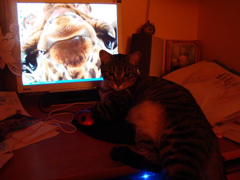 na teto fotce je její nejoblibenejsi misto...pred mym monitorem,abych nahodou nevenovala pozornost necemu nebo nekomu jinemu nez ji..