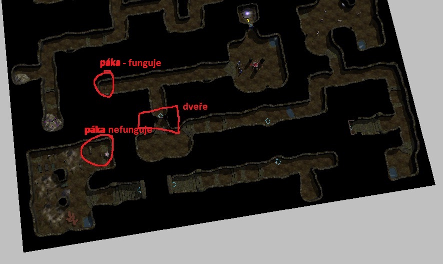 Ty scripty mě zničí  Takže..... 1. Zamčená páka Vytvořil jsem script tak jak má být Dal jsem dveře a tag "dvere" (na dveře jsem dal script ja_door_onopen a proměné jak mají být DOORCLOSE int 1 a DOORCLOSE_DELAY int 1) Udělal jsem páku a dal na ni script ku_lever_lock Na páku jsem nastavil proměné DOORS_TAG string dvere UNLOCKED string ku_opendoor Páku jsem zamkl a dal na zem klíč, kterým se páka odemkla. testoval jsem - nefunguje ------------------------------ 2 páky na 1 dveře Dal jsem dveře a tag byl dverex (na dveře jsem dal script ja_door_onopen a proměné jak mají být DOORCLOSE int 1 a DOORCLOSE_DELAY int 5) Dal jsem dvě páky vedle sebe script obě mají ku_door_lever Proměné jsem jim dal DOORS_COUNT int 1 (otevírá tedy 1 dveře) DOORS_TAG string dvere x LEVER_COUNT int 2 (jsou třeba 2 páky) TIMEOUT float 5 (musí se za obě páky zatáhnout v rozmezí 5 sekund) testoval jsem - nefunguje ---------------------------------------------- Dál jsem zkoušel i script ku_opendoor Funguje v pohodě, dám dveře na ně script a proměné a páku a na ni script a proměné. Pohoda. Problém je, kdžy tu páku dám dál od dveří. Pak script selže a nefunguje. Jako by ty dveře nenašel. Viz obrázek