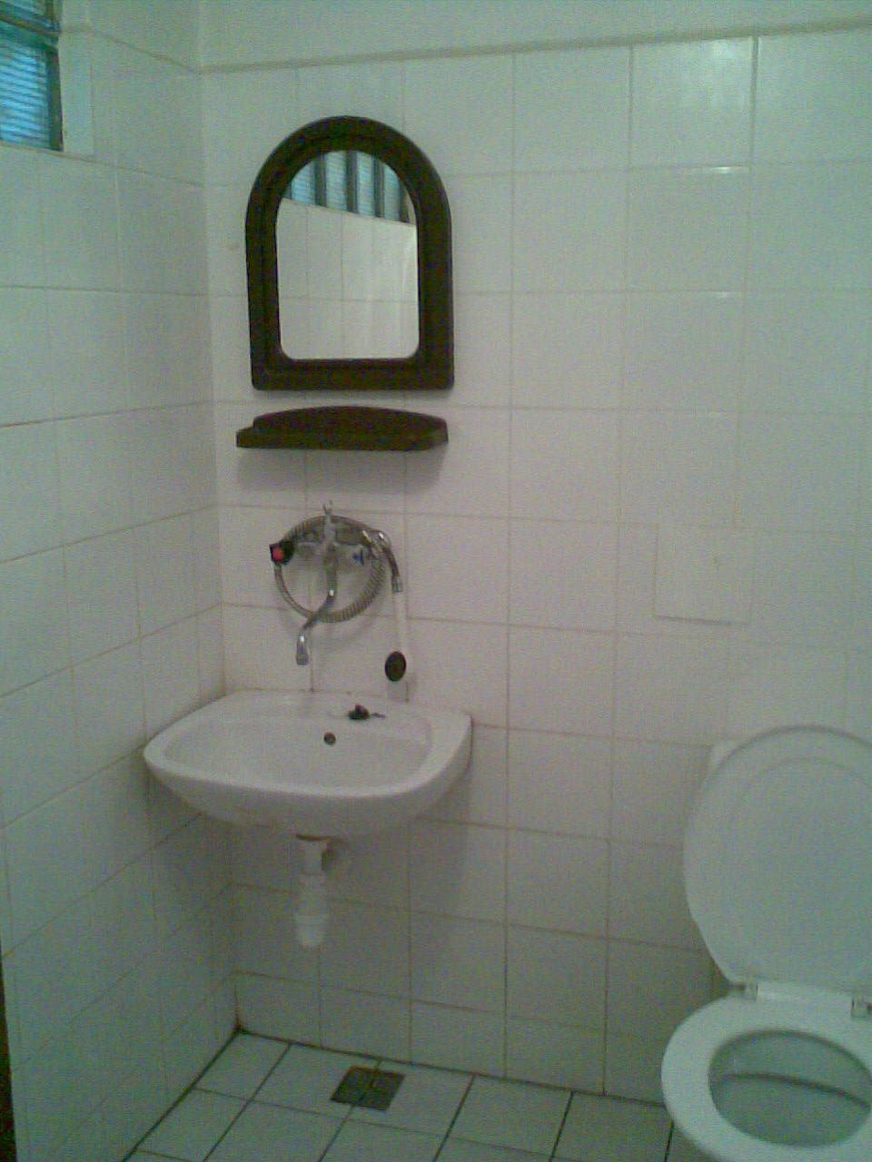 Jedna se o velkou vykachlickovanou mistnost, ve ktere je jiz predem nainstalovan zachod (kdyby nahodu nestihalo umyvadlo odebirat vodu). Do teto mistnosti se nainstaluje umyvadlo, a k jeho kohoutkove regulaci se pripoji na vystupni strane vyvod jak ve sprse.