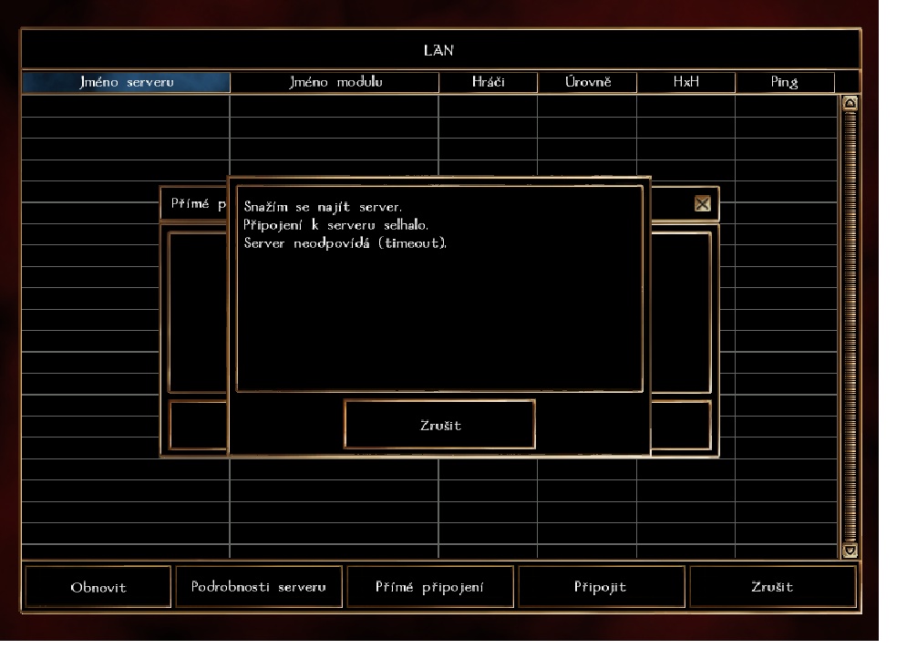 Godried wrote: ted to fakt nejede Nova IP adresa by mela byt v prekladu: 78.108.108.89:5121 Servr cca v 18:00 padnul...takže teď pro změnu není chyba v ardese , ale přímo na servru. Těch 21 hráčů tam oprvdu teď není ale jen zůstala jejich jména vyset v ukazateli. Vím to 100% protože podle ukazatele stále hraji  ))