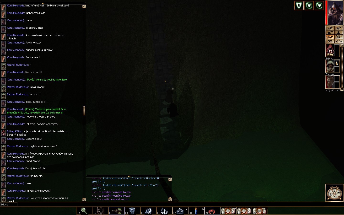 jachyra wrote: 1. otravovanie hráča po telli Jen jsem ti vysvětloval, jak to vidím já. jachyra wrote: 2. útočenie bez odporu To je lež! Dávám odpor hned při lognutí. jachyra wrote: 3. ja som ani nevedela, že tam Neithan je a ten to urobil len práve kvôli vášmu chabému RP a vašej potrebe - prídem, ušmiknem hlavu, lebo to nie je žena, ktorá hneď roztiahne nohy, jak sa jej povie .... Na chabý RP a zabití bez šance dávám screeny..... Ať si tě DM oživujou dál, když jim to přijde spravedlivý.