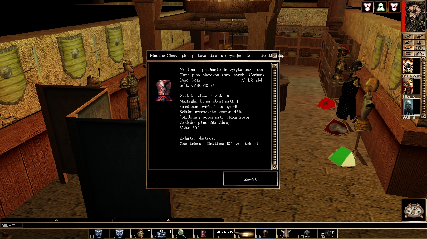 slencak wrote: Ahoj, udělal jsem vyjmečnou zbroj, ale nemá nic extra. Je z mědi a cínu, tak by mě zajímalo jstli je to normální? Mno..já myslím, že vyjímečná už je třeba tím, že nemá záporné bonusy (vyjma té elektriky). Protože třeba luky z těchto kovů dělané jsou zásadně -1 vylepšení (a hůř  ). A zbraně na blízko nejspíš taky. Až bronz a železo má nějaké ty "pozitiva", který stojí za to "vzít" do ruky.