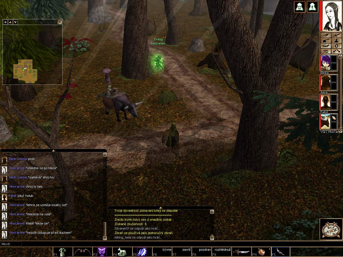 Nevím zda to dát jako bug, nebo pro pobavení (IC se asi po desátém zjevení ducha, už postava málem zjevila taky  , odskákal to jeden půlčík  , jako na potvporu v kouzlu "vzhled ducha"). Chodí si tak elfka po lese a co nevidí - prokazatelně mrtvé hráčské postavy trajdají po povrchu. Jednoho jsem posléze kontaktoval a potvrdil mi, že je opravdu mrtvý u ďábla (postava Wiliam). Na střídačku se ti duchové objevovali a mizeli při změnách lokacích. Občas stáli, občas se pohnuli. Zaznamenal jsem jména Xullyr Rrorrok, Xullfryn Zuandar(zrovna čerstvě čerstvě "popravený" létající ježek, ehm), Draug, William. Pro ukázku tři screeny: Attachment: