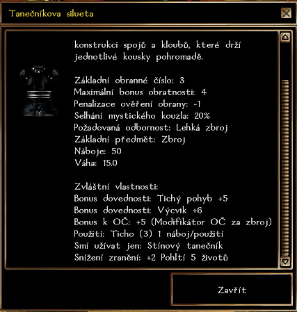 Po nasazení na postavičku bez výstroje přidává 6 bodů do obranného čísla ,