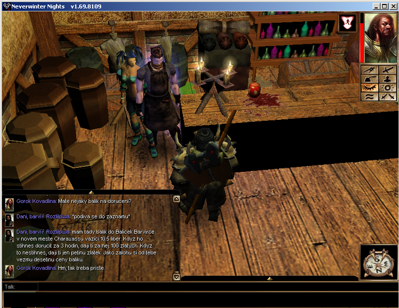 no to je zajimavy. asi maj nastavenej stejnej dialog to ej taky des, vypisovat furt vsechny ty dialogy. PS: jinac ten balik i kdyby ste dole k tomu NPC prisli by nefungoval, rptooez barvirka nema natavene dobre promenne... (to jen tak pro pokusitele)