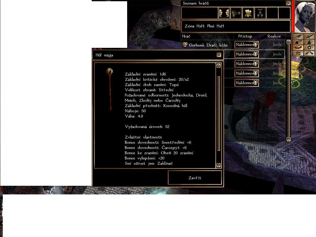Ta hul je ode me, mel jsem ji z toolu upravenou a dříve byla jen +6čarozpyt a +6soustředění, pokad se nepletu. Do hry mi ji předalo Dm, uz nevím jake, ale urcite ji kontrolovalo než mi ji davalo.