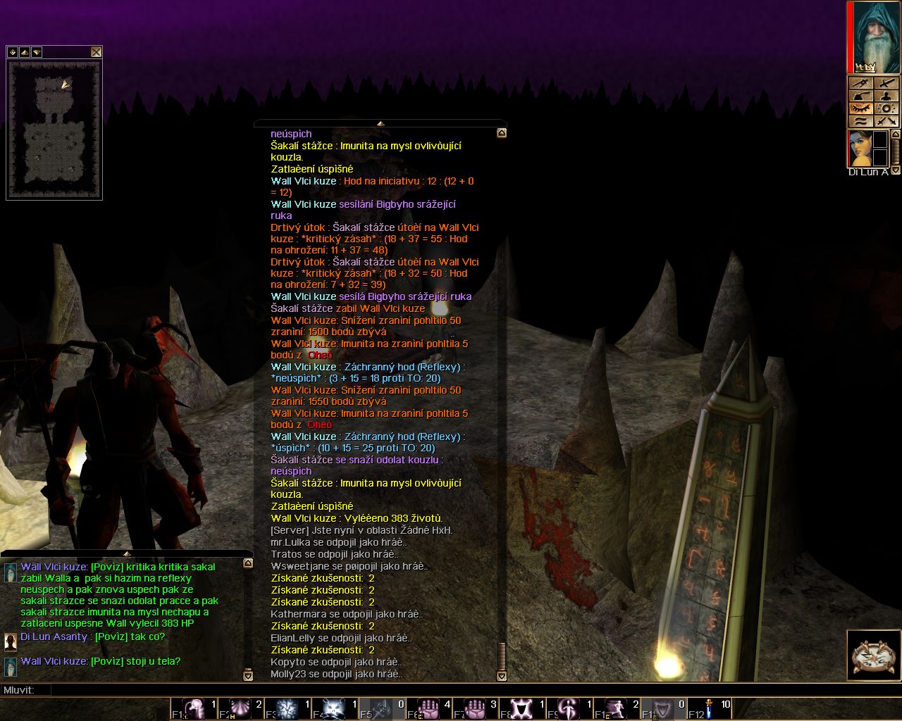 Kdyz sem bojoval v chramu Skilgamona proti sakalim strazcum podarilo se me jednoho chytit prackou s rychlosti sem si udrzoval dostatecny odstup a pokousel sem se chytat dalsi nahle bezeli tri opet sem seslal pracku a pak se deli neuveritelne veci :lol: