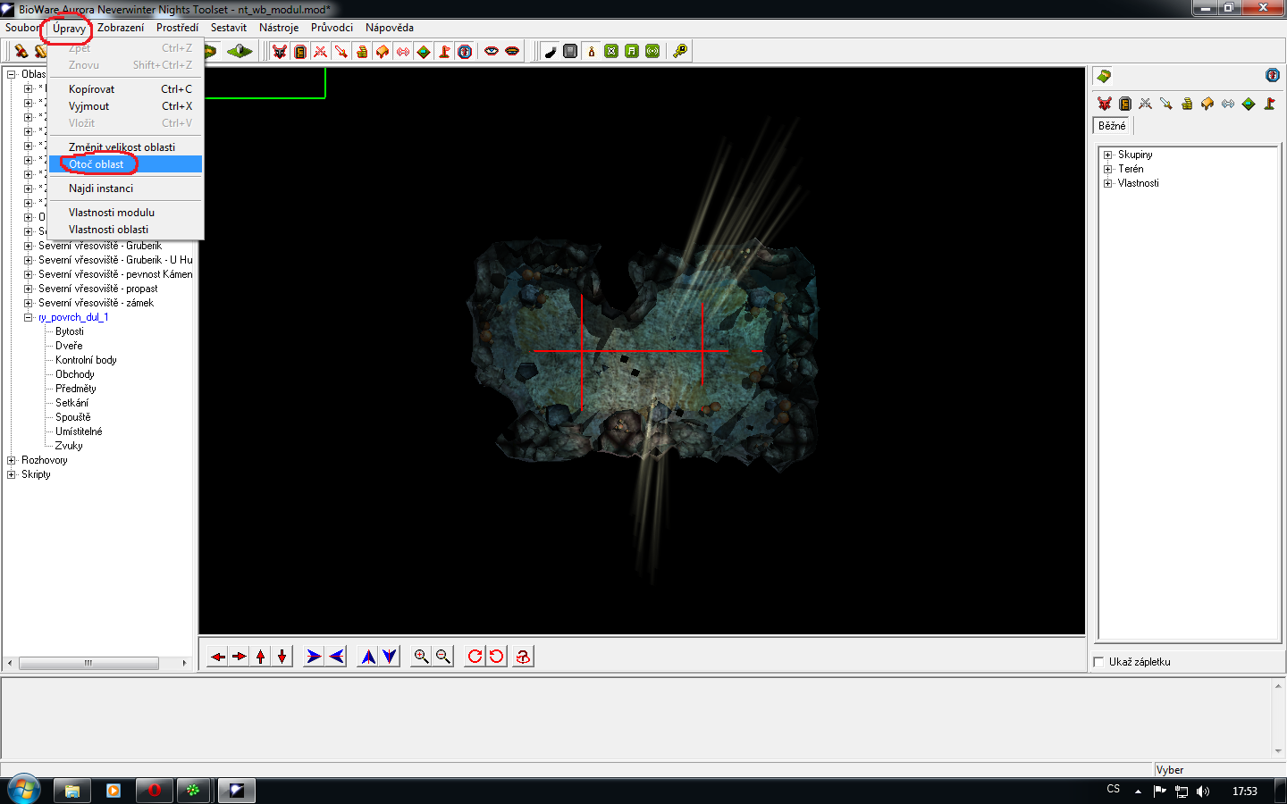 1) V horní liště vyberete "Úpravy" a pak "Otoč oblast".