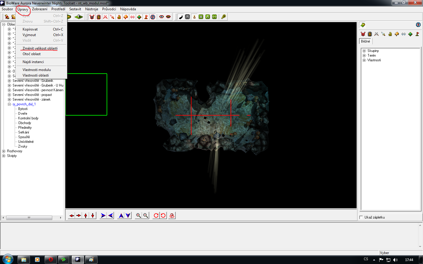 Změna velikosti lokace 1) V horní liště vyberete "Úpravy" a pak "Změnit velikost oblasti". 2) Do příslušných okýnek napíšete změněnou velikost. Poté kliknete na "OK".