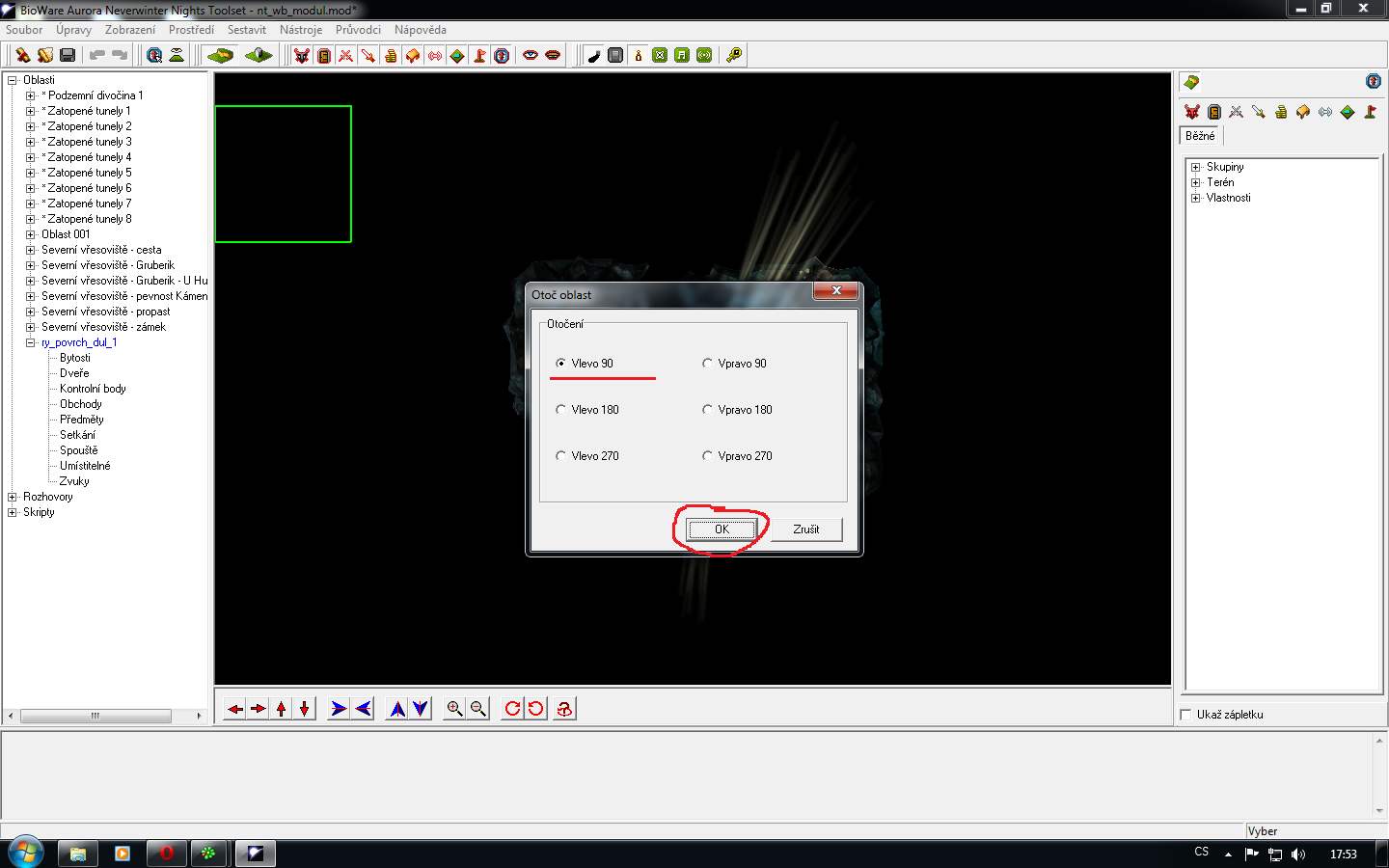 Otočení lokace 1) V horní liště vyberete "Úpravy" a pak "Otoč oblast". 2) Zvolíte příslušné otočení lokace. Poté kliknete na "OK".