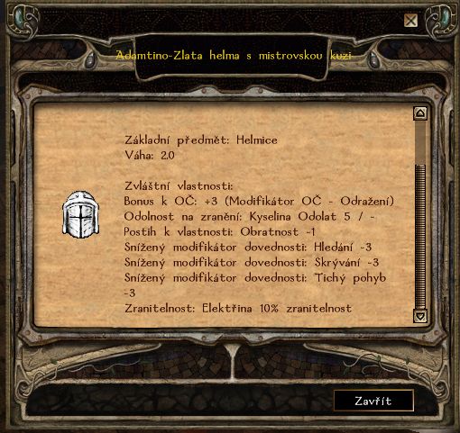Radim wrote: Dvě různé helmy,ale u obou postih do obratnosti.Dělá mi to i u jiných kovů nehledě na použitou kůži.Poměr u jedné z nich je 140 adamantin 60 zlato PS.: dodělal jsem 20 lvl a je to pryč tak nevím zda sem vůl nebo je to špatně  To znamená, že jsi špatně nakombinoval kovy