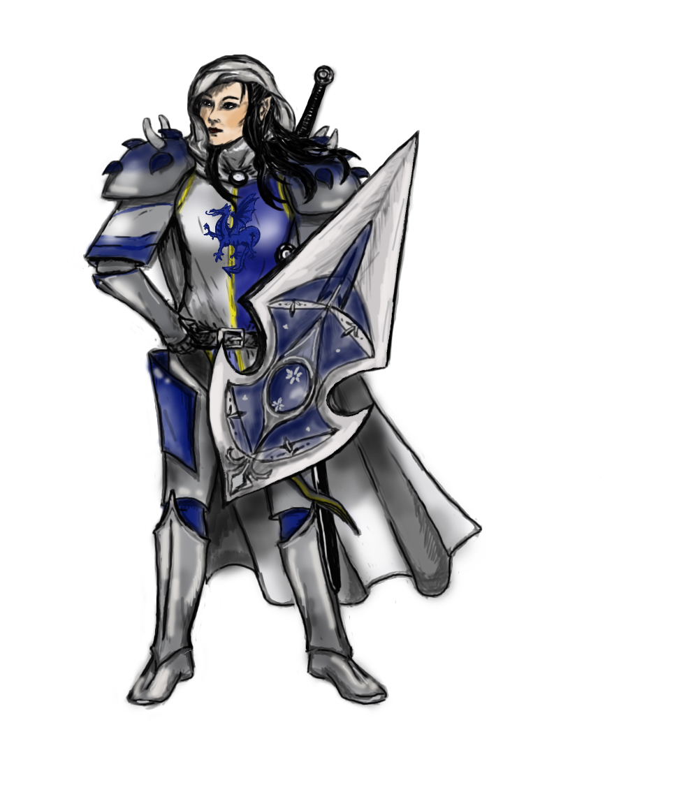 Neliaen Fey de ErestorVlasy černé jako noc, v žilách světla proudí moc. Oči modré jako moře, překoná kdejaké hoře. Rysy něžné jemnou pleť, pěst však tvrdou jako zeď. V tváři hrdost odhodlání, statečně zde dobro brání! Před lůzou a před démony, když zazní nad městem zvony. S ořem svým vyrazí vpřed, čepel chladná jako led. Hlavy stíná jednou ranou, čelist zláme jílce hranou. Válečnice s něžnou tváří, nad hlavou ji slunce září, Vpřed do bitvy, žádný strach, nepřátele měnit v prach… Vysoká je pět a půl stopy. Má bledší kůži, což by se dalo částečně přisoudit častému pobytu v chrámu. Vlasy má černé s ofinou svázanou do culíku, aby nepřekážela v boji či při používaní helmice. Oči tmavě modré, jako rozbouřené noční moře v němž se jiskřivě zrcadlí svit měsíce. Tělo má po elfsku drobné, avšak ne slabé, spíše šlachovité. Ačkoli její zbroj nese známky častého používání, jizvu by jste u ní nenalezli. Snad až na jednu, nepatrnou nad levým obočím. Celkově její tvář působí příjemně a nelze ji upřít typický elfí půvab. Chodí vždy zpříma a hledí hrdě před sebe, nikdy ne do země. Její pohyby působí jistě a sebevědomě. Oděna chodí v barvách Dei-Ananga(bílá-modrá-zlatá) kde většinou nechává převládat bílou a modrou, ale záleží na situaci. Velmi úzkostlivě dbá na hygienu a údržbu svého zevnějšku, neboť byla učena, že čistota paladinovi duše se má odrážet v čistotě paladinova těla a otrhaným vagabundem si může dovolit být pouze žoldácká chátra a ne Dei-Anangův válečník. Neliaen Attachment: