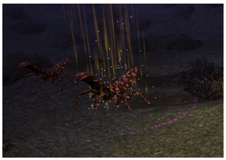 Již dříve jsem se zmínil o tom, že existuje mnoho různých brouků, všech různých velikostí a všemožných obranných mechanizmů. Také jsem došel k názoru, že čím blíž k povrchu, tím hůře se dá narazit na schopného a odolného broučího jedince. Je tedy na čase upozornit na výskyt nebezpečné kolonie ohnivých brouků v Broučích tunelech nedaleko za Kahzetem. Už samotný průchod skrz bývá blokován na loket vysokých a půl sáhu dlouhých jedinců ohnivce velkého, jehož krovky jsou odolné proti proražení a jejichž pružnost je vskutku fantastická. Rozehnat tyto jedince v úzkých chodbách tak může vcelku znepříjemnit život. Oproti doupěti, které je položeno o poznání níže a kde je nutné při vstupu i sehnout hlavu, jde v případě ohnivce pouze o malou předehru následujících komplikací. Pominu-li nepříjemný odér doupěte, je zde nutné vypořádat se s nadmíru schopnými brouky a nevědět, že jde jen o brouka se zvířecí inteligencí, dokonce bych jim přisuzoval nějaký ten inteligenční bod navíc. Vesměs zde žijí dva rody a to ohnivý a kyselinový. Za škálu obraných a útočných kouzel, které jsou schopni produkovat, za tu by se lecjaký faern stydět nemusel. Pokud se povede rozehnat tuto smečku ohnivých a kyselinových brouků, při troše štěstí (či smůle) se dá narazit na matku ohnivých brouků. Jedná se o veleobřího brouka nejméně dva sáhy vysokého a tři dlouhého, pohybujícího se na třech párech klepýtkovitých končetinách, tělem zahaleném v dokonalém krunýři s ohnivě zbarvenými ornamenty. Stejně jako u ohnivých brouků broučí matka disponuje širokou škálou ohnivých kouzel, která neváhá proti narušiteli použít. Pokud ani to na vetřelce nezabere, snaží se ho rozdrtit svým ohromným broučím tělem. Cennou trofejí se stává krunýř matky brouků, který i po smrti temně žhne a který je schopný udržovat teplotu po velmi dlouhou dobu. Z toho důvodu předpokládám, že se používá jako obložení luxusních domácností. Za 5 a půl libry těžký krunýř bude vetešníkem vyplaceno deset měšců. Svou polohou je to pro rodinu vhodné místo pro získávání drahocenného stavebního materiálu.