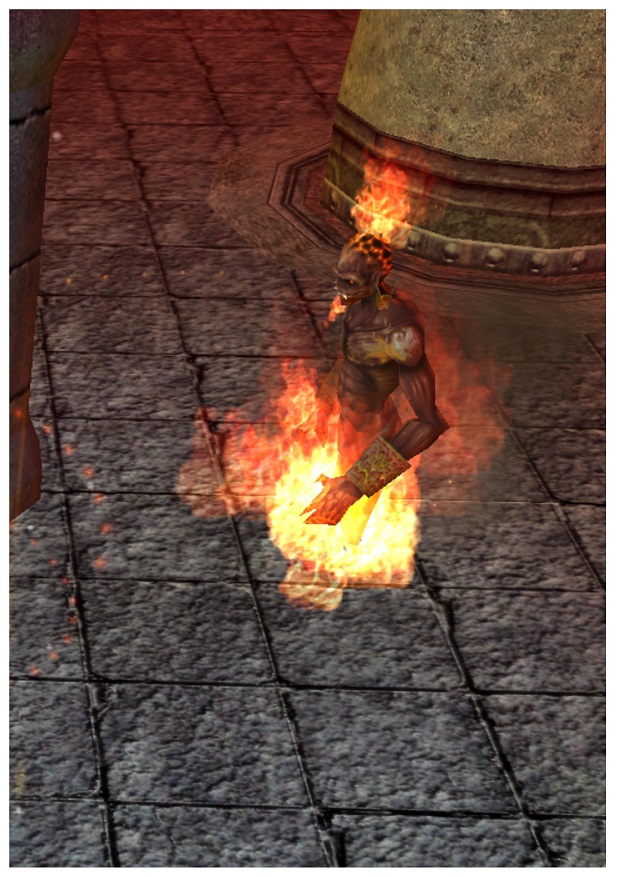 Je známo, že po světě se pohybuje mnoho bytostí spojených s elementy. Ať už to je oheň, voda, vzduch a nebo země. Jejich síla a nebezpečnost se prakticky nedá stanovit, dokud s daným stvořením se lovec nedostane do křížku. Na jednou z takových zajímavých bytostí je možné narazit ve Skalních horách, kterou si pro svou existenci zabrali ohnivý elementálové. Je pravda, že mě nejprve jejich kolonie překvapila, protože bych podobné tvory očekával spíše v suché a slunné poušti eventuálně v hlubokých jeskyních v blízkosti sopečného jádra, ale po podrobnějším prozkoumání se jedná spíše o nějaké vyvrhele, kterým se zde povedlo zapustit kořeny poblíž malé sopečné pukliny a nemají skoro nic společného s prastarou ohnivou silou spojenou s jádrem podtemna. I tak jim ale puklina poskytuje dostatečnou sílu k tomu, aby bytosti nebylo radno podceňovat, protože žár vycházející z jejich těla, které je kompletně pokryto plameny, je rozhodně nezanedbalný. Navíc se kov při doteku žhaví a není snadné zasáhnout materiální bytí těchto bytostí. Zcela výjimečně je možné v kolonii narazit na skoro humanoidní bytost, která má na výšku něco málo přes dva metry, dvě ruce a je bez nohou. Levituje na ohnivém polštáři, jeho dech, zrak i vlas je ryze ohnivý. Boj s bytostí je obtížný, protože je možné zasáhnout pouze magickou auru bytosti a tato bytost se svou energií všemožně snaží auru obnovovat a to až do chvíle, kdy se vyčerpá, pohasne a rozpadne se. Nezůstane z něj žádné hmotné tělo, jen popel. V tuto chvíli doporučuju zachovat klid a nevířit okolo, ale pečlivě prach sesbírat do předem připravené nádoby. Prach je velice ceněný, za 5,5 lb prachu jsem získal celých osm měšců zlata. Prach údajně přidávají duegaři do tavných pecí k zpracování nejtvrdších kovů. Pro rodinu toto však není vhodné místo, neboť rothe spálený na uhel není dobrým zhodnocením rodinných financí.
