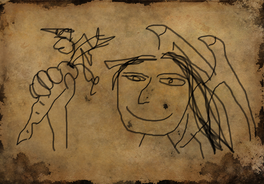 Už je to dlouho co naposledy kreslila. Několik dlouhých měsíců se toulala po elfím městě a užívala nabyté svobody a slušné peněžní rezervy. Po jedné prohýřené noci se vrátila na objednaný pokoj. Unavená, ještě trošku pod vlivem a přesto se jí nechce spát. Pozoruje se zamyšlením nákupní seznam co leží na stole, a z jejího výrazu může číst jen Morus. Jako by do ní blesk uhodil, nebo jí ze židle vyhodila nadpřirozená síla, skočila ke kamnům a hned neopatrně pohrabáčem vyklepla několik uhlíků. Když částečně vychladly, položila si je na stůl a pak začala sebevědomě a rázně kreslit na druhou stranu nákupního lístku. Nikdo neví, jen ona sama, proč nakreslila zrovna jí, ale každý kdo ten obrázek uvidí, pozná že je na něm vyobrazena Černá paní Isabell...