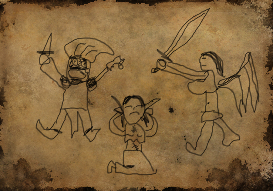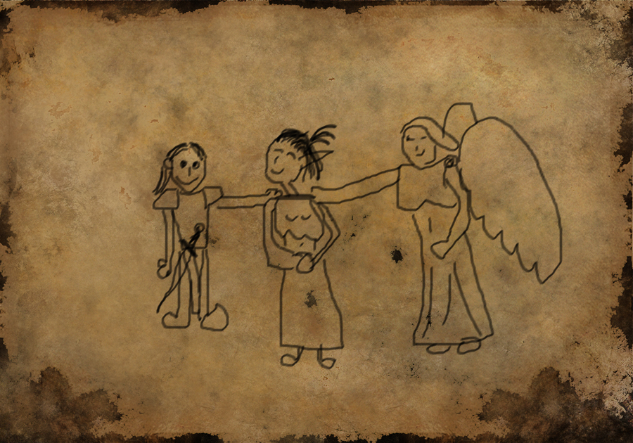 Rafael nakreslila další dva pergameny, které nechala na stole v bytě pro svého spolubydlícího. Narozdíl od ostatních obrázků jsou tyto smutné. Ostatní obrázky ze stěny pokoje zmizeli. Rafael si je vzala sebou. Attachment: