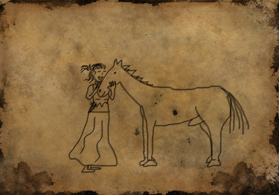 Rafael a kůn. Je vidět jak zlepšila techniku kresby, ikdyž kůn vypadá pořád strašně.