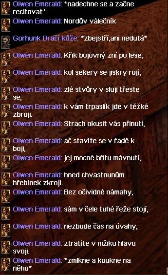 Dej Norde ať moje pracka pod náporem ran vydrží a hordy voblud před brachama zadržim... Diemovo sekeru s rychlostí blesku do jejich střev nasměruj ha moje rány cez Glarikovo haksne zaceluj ! .......