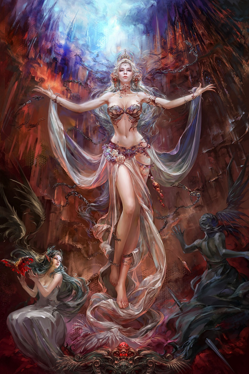 _________________ Aria Oria - pohledná divoká dívka, která ráda své skvostné tělo vystavuje jen ve skromném oblečení. Její postava nese znaky dračí krve, od rudých křídel, přes oranžové dračí oči, až po tělo hřející tak, jako by měla horečku. Měšťanka Karathy a členka Morusova stánku.