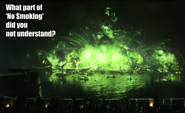 No fuj, takhle mělká plechová lebka ozbrojence úplně vlevo, za to bych hned věšel. Asi došly prachy na kostýmy, tak místo helem začali vojákům nasazovat na hlavy misky na jídlo.