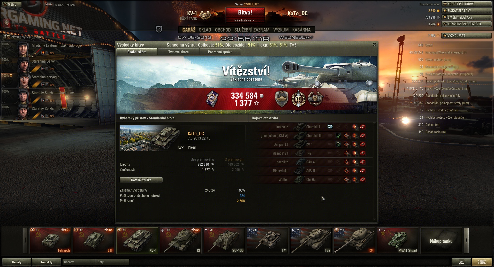 P.S. Po 30sec hry jsem přebil na zlaťáky (proto ten vysoce "kladný  " výdělek = -18 000 kreditů), protože mě neuvěřitelně vytočil začátek hry ve stylu "lemings", kdy soupeř rozsekal 5 našich tanků...a já teprve prvního Churchila  o kterýho jsem si "fest" zacinkal a dílem neprobil a měla to být moje poslední bitva, kdy mi chyběli tři killy a já chtěl už spát  .