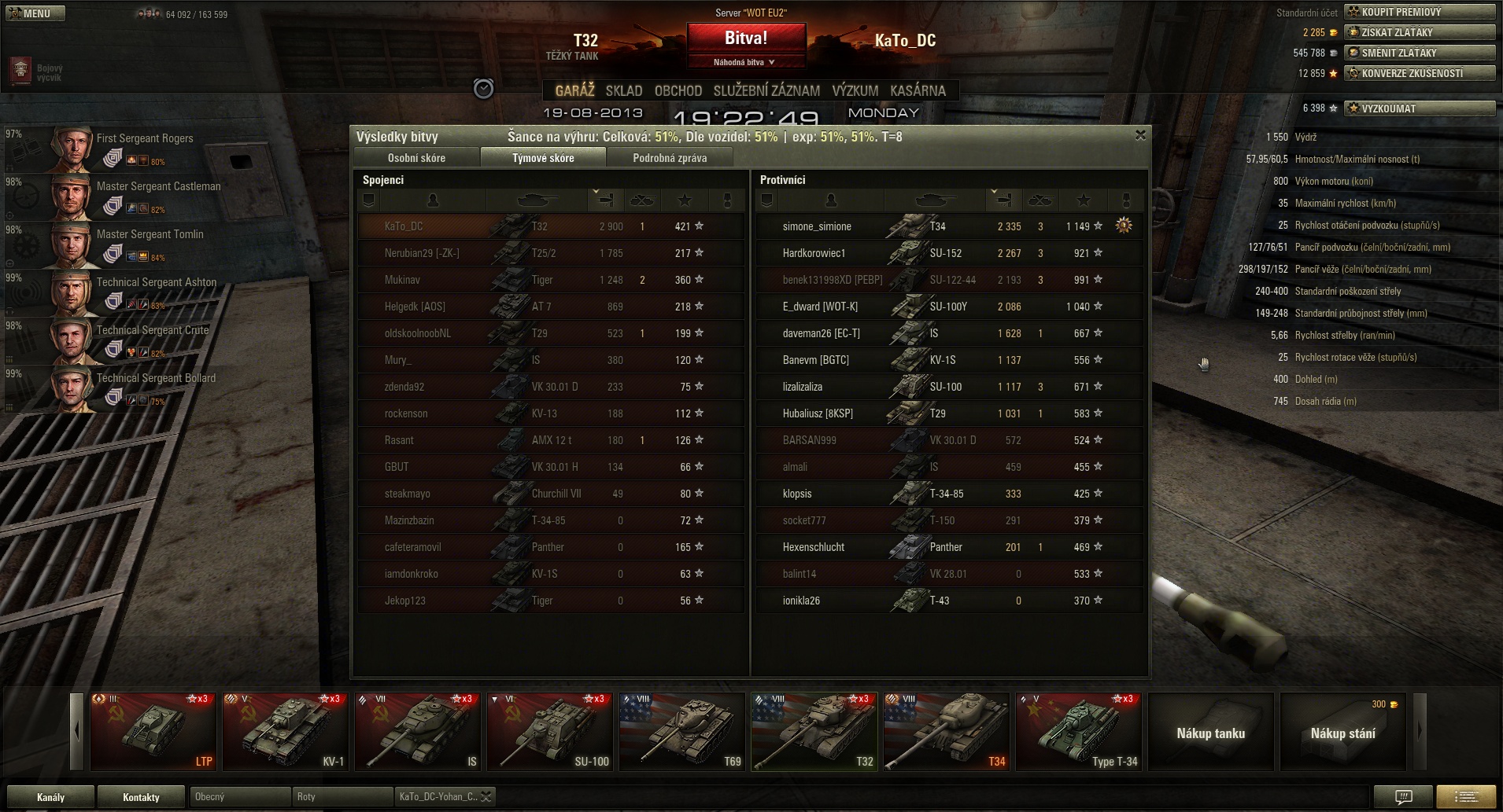 Ohledně nasazování tanků proti sobě, já osobně to moc neřeším. Ty sice máš mindrák ze sovětů, ale i dobrá T32 může ty IS-3 vykosit.
