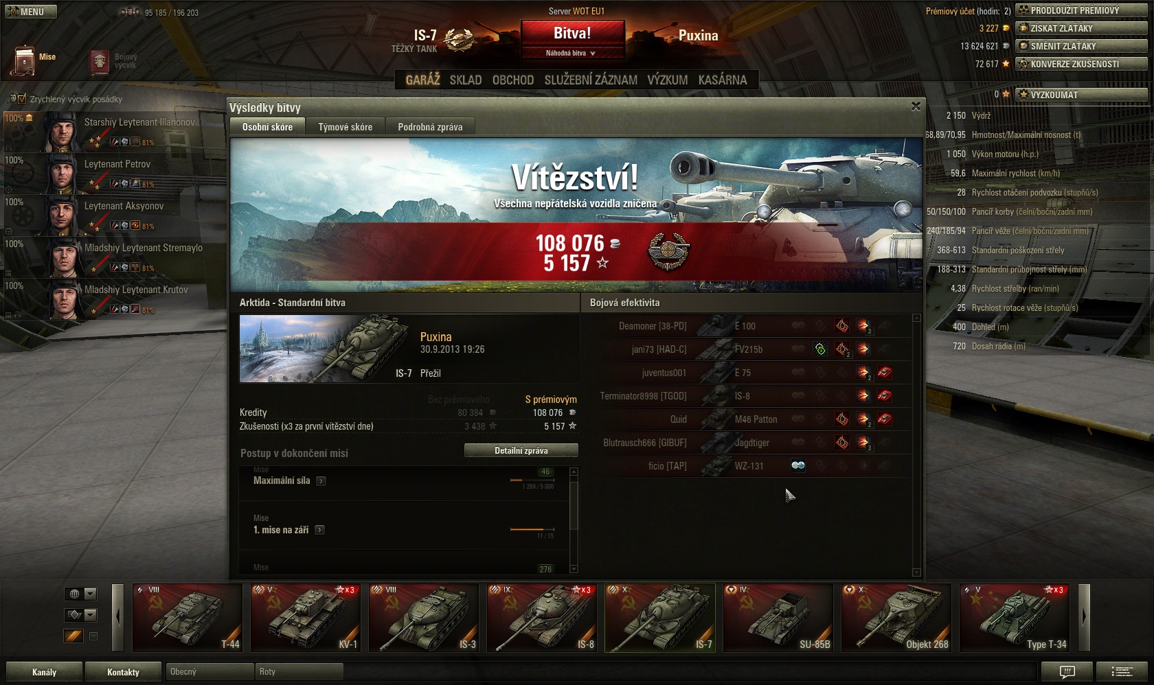 Bahnak wrote: Puxina wrote: Uh  ted jsem měl výdělek s IS-7 jak s prémiovým tankem a to jsem dostal ještě 25k za 5000 dmg  Divné, že jsem neztratil ani HP ze svého tanku, to se stává jednou za deset let  Cong, smekám čapec, vydělat přes 100k kreditů jsem prostě ještě neviděl... Asi hrajem trochu jinou ligu  Víš kolik to stálo zbabraných bitev?  Ale k tomu pomohl i premiák, který mi asi už skončil.