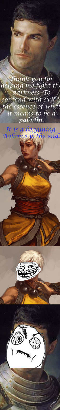 *chláme se* Jojo, dneska jsem si to zkusil za mnišku a tenhle rozhovor mě rozsekal naprosto stejně  . K mnišce - má self-heal (pro celou skupinku), AoE s relativně dlouhým dosahem, nechápu jak něco takovýho může umřít. Zabíjení šlo "rychle", ale stále tvrdím, že na "kill in blow a monster kill" je lepší Nekromantka. Btw - u mnišky mi nedělal dobře miniteleportační skill. Si říkám, co to je za divný škub, škub proboha? Divný lagy...a on to skill  .