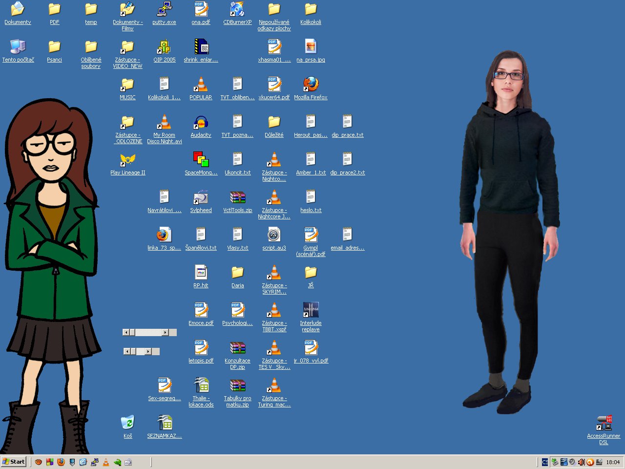 Moje nová plocha vypadá takto: Nalevo Daria ze seriálu Daria, napravo Ester Krejčí z mého vlastního seriálu Ester Krejčí. Od minula také značně ubylo ikon. Attachment: