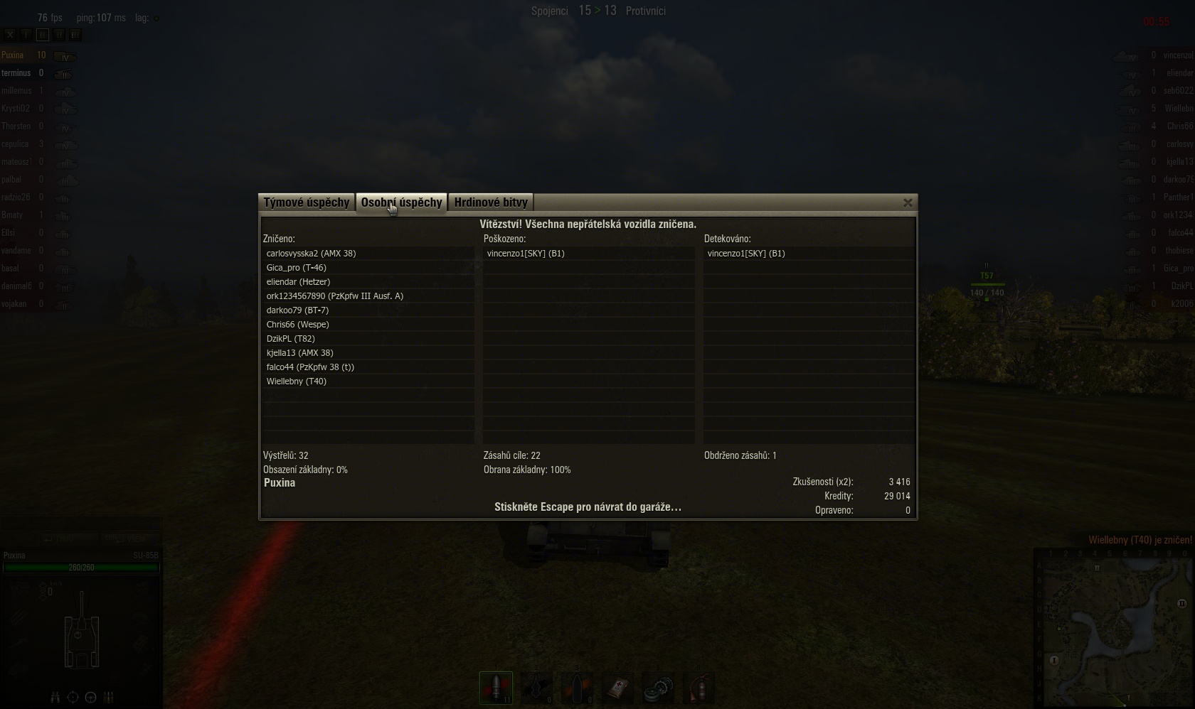 To že mám víc zničených tanků než počet odehraných bitev, byl cíl, co jsem si zadal. A hlavně k tomu pomáhají ty sovětské stíhače :wink: .