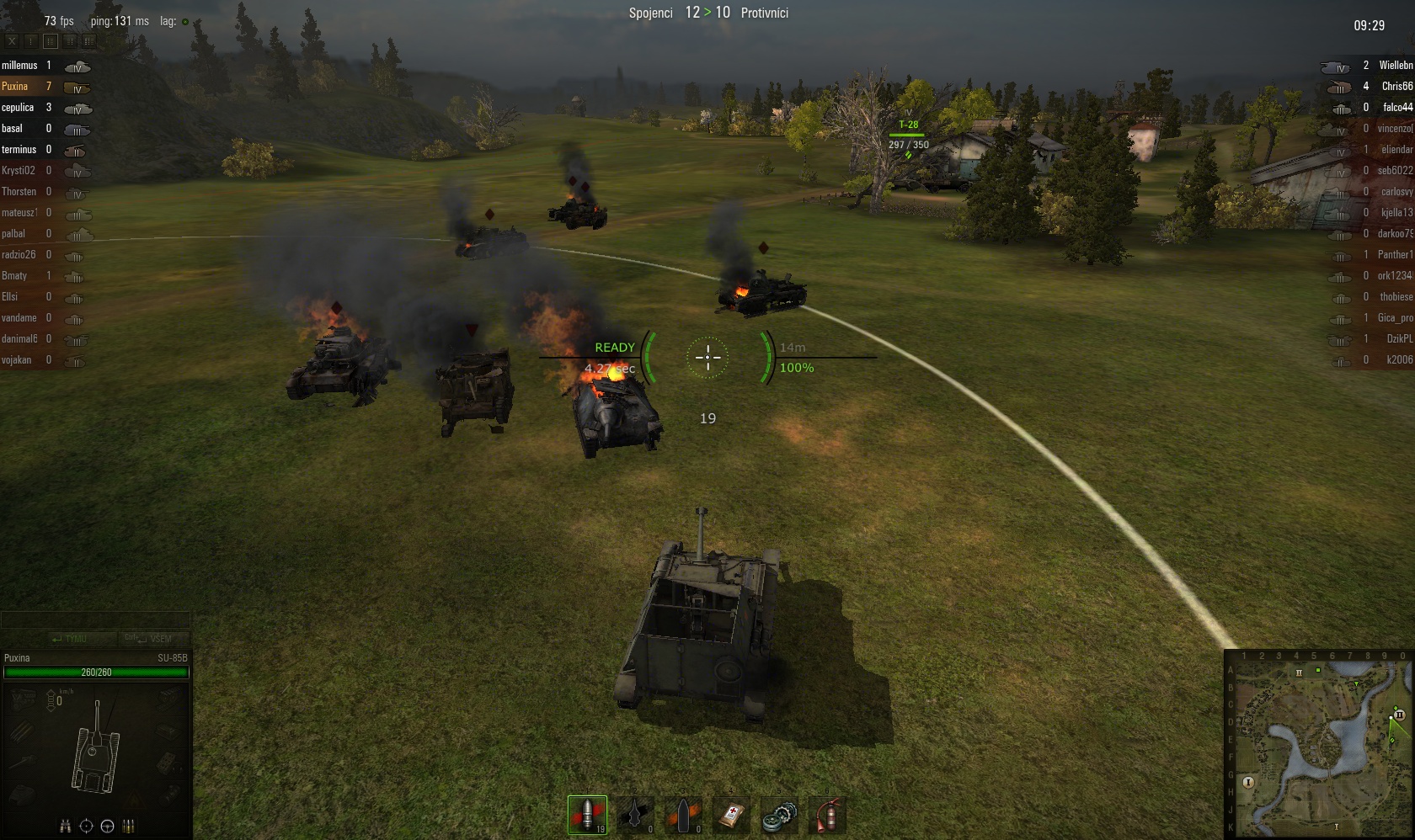 Ale dat poradnej kopanec je taky celkem sranda, kdyz stojime s RoFem vedle sebe a vystartuje na nas kralovskej tigr s 1600hp a my ho soustrelem smaznem na salvu, hm celkem dobrej pocit.
