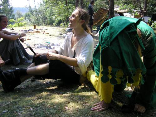 jachyra wrote: Mno keď je tu už toľko portrétov, tak sa pridám i ja  tak tu je moja maličkosť(to s dlhými vlasmi a bez meča) s mojím vyvoleným na svadobnom fotení - len dodávam že svadobné šaty nie sú imitácia ani nič podobné - ušila som ich sama, meč je železný a používaný  len mi tam chýba gitara Nice,very nice...to fakt si si sama ušila takéto šaty? Fuuu! Klobúk dole.A na akej gitare hráš...stredovekú hudbu?Máš aj takú gitaru...stredovekú?Ja hrám klasiku.