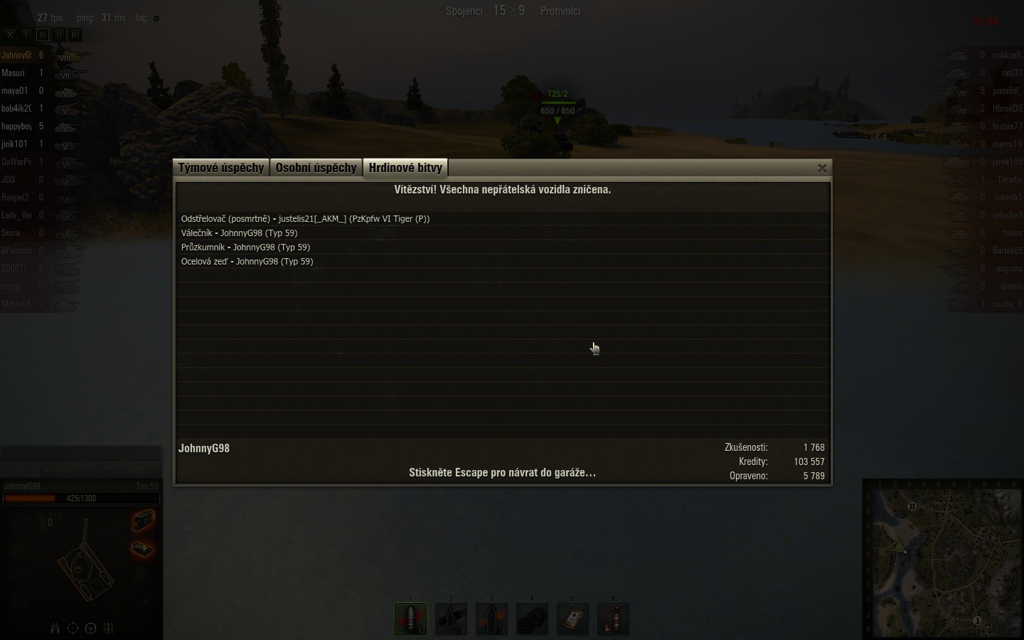 Tak hurá, už mám stoprocentní posádku u VKčka a schází 2k xp do tigera  no a pak asi nějakej ten melounek peněz no  plán je ještě expit VKčko, protože chci ještě toho sedmičkovího středáka a z něj na pantery.