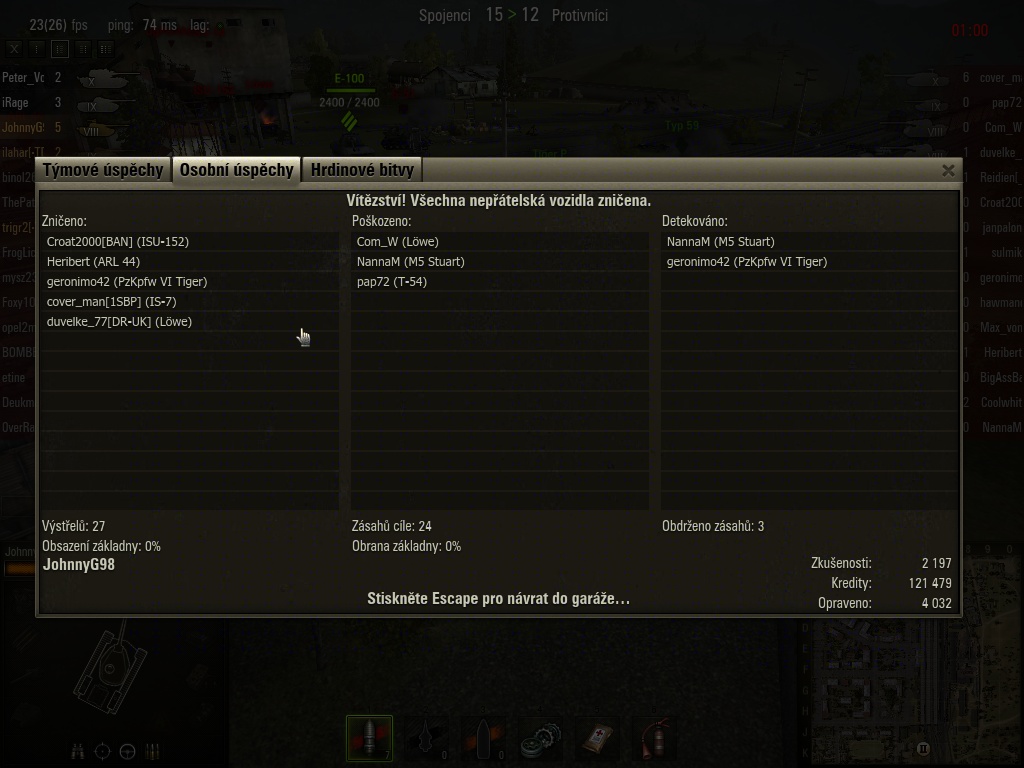 -RoF- wrote: Molly23 wrote: A to si třeba nemyslím  , protože mi to s tím sedmičkovým dělem jde mnohem líp a xpčka lítaj. Zkoušel jsem všechna děla až na tu nechutnou houfnici s nízkou penetrací. Přeci jen 132 penetrace a 220 poškození je pěkné a uberu tím slušně i nějakým těžákům. S tímhle dělem jsem začal ničit své první typy  . *zamrká* Já jako myslel, že je zbytečné dávat ty expy do té houfnice. Aha, sorry, nějak mi to z tvého příspěvku nevyplinulo. Měl jsem dojem, že mluvíš o prvním dělu, které zminuji a říkám o něm že je i na tigerovi.  Jinak už mi stoupá efektivita, ony mi tu statistiku ničí počáteční bitvy  , A-20, AMX 40 a AMX 12t hehe...