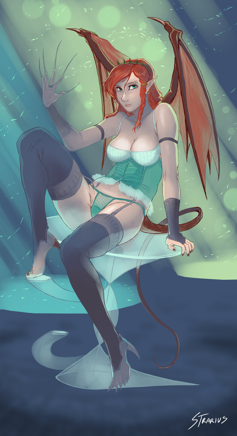_________________ Aria Oria - pohledná divoká dívka, která ráda své skvostné tělo vystavuje jen ve skromném oblečení. Její postava nese znaky dračí krve, od rudých křídel, přes oranžové dračí oči, až po tělo hřející tak, jako by měla horečku. Měšťanka Karathy a členka Morusova stánku.