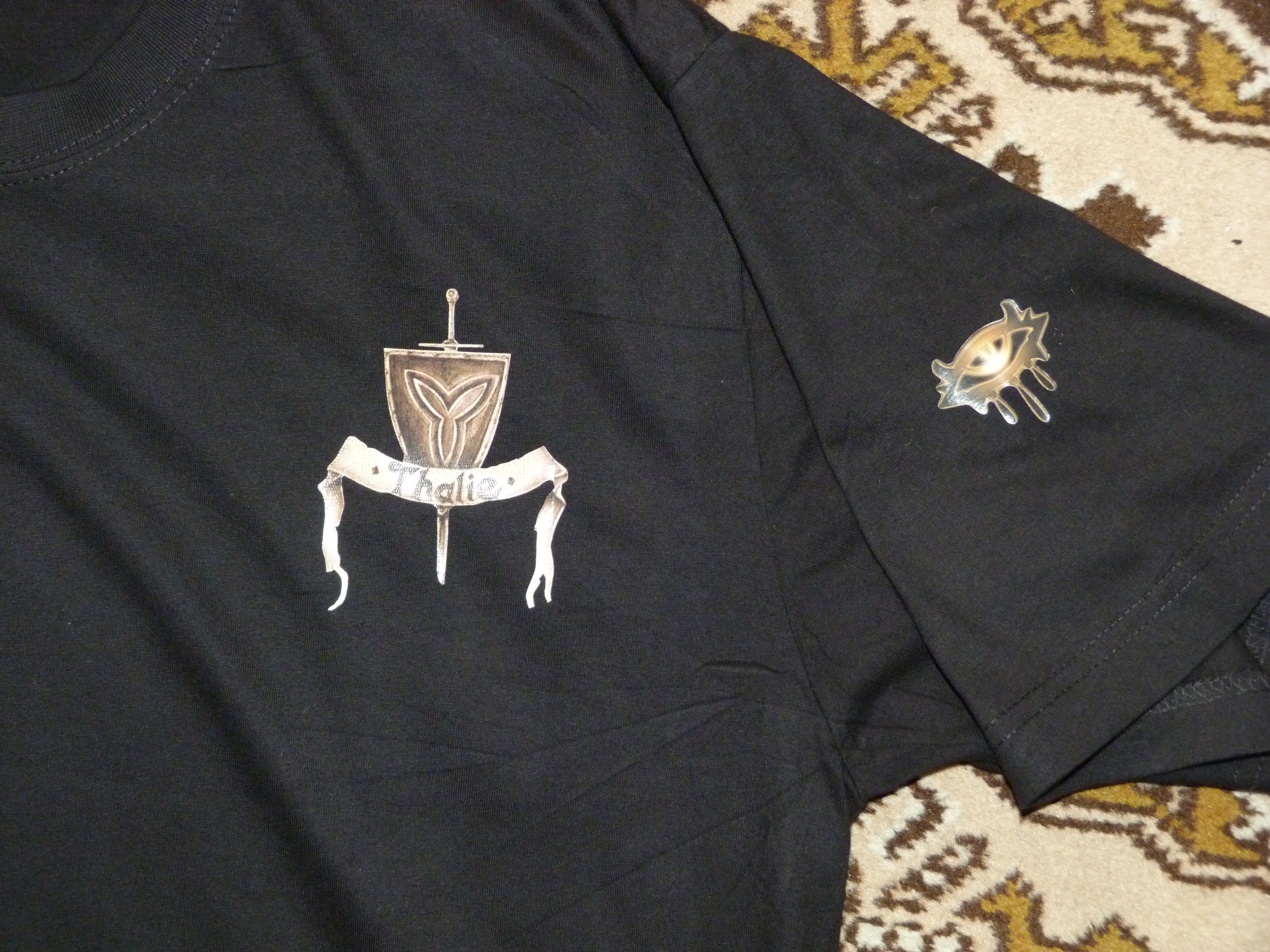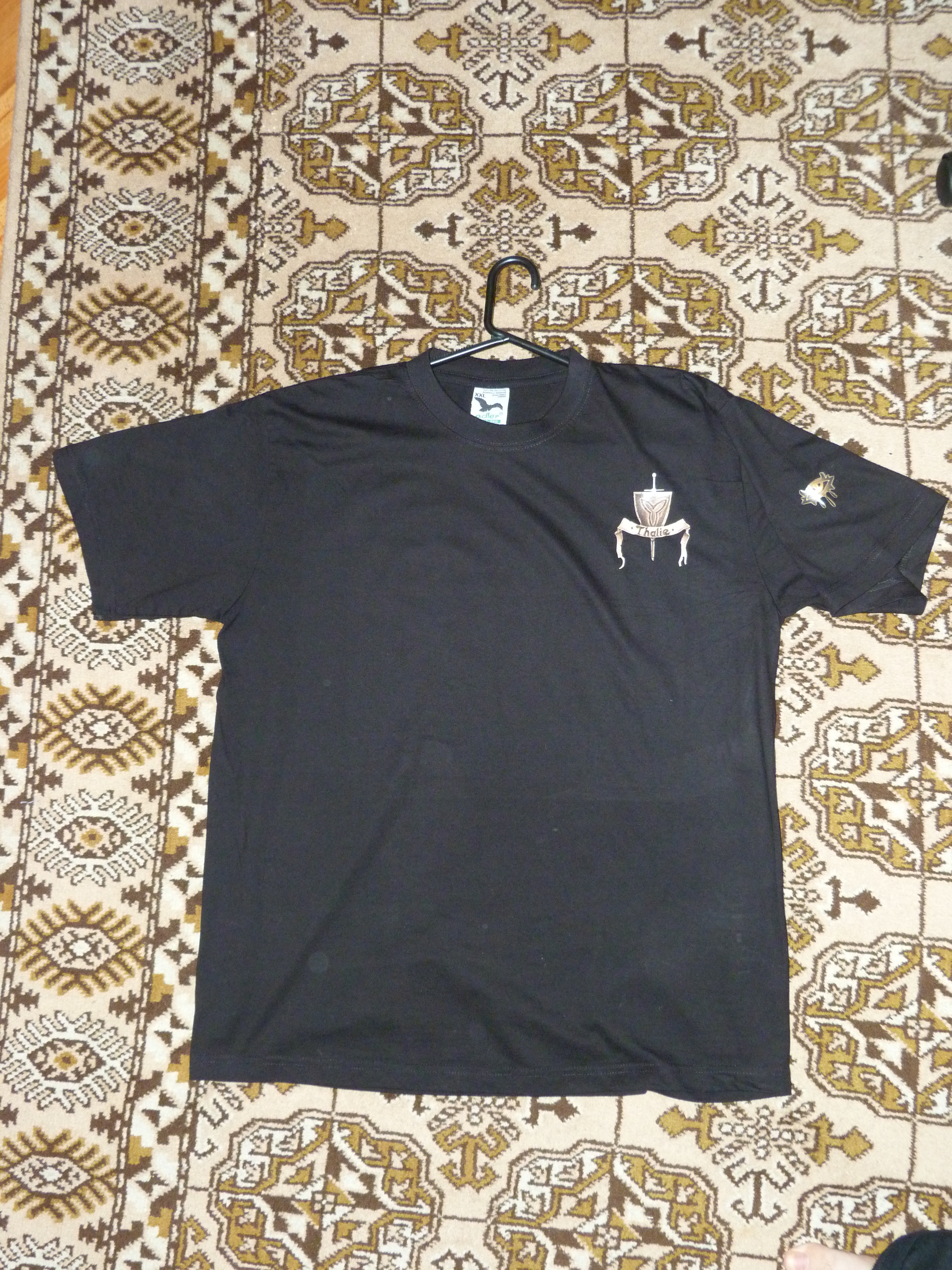 Takze slubene fotky vzoroveho tricka - sorry za slabsiu kvalitu fotiek, ale fotil som to doma narychlo. Jedna sa o klasicke cierne tricko znacky Adler - Tričká Heavy 200 čierna. Popis: Kvalitné tričko vysokej gramáže vhodné na potlač a výšivku. Reprezentatívny darčekový predmet, okrúhlý priekrčník s 5 % elasténom. Vynikajúca kvalita materiálu a šitia. Všetky švy sú zdvojené. Spevňujúca ramenná páska. Tkaná etiketa. Trup je po stranách bez švov. Špecifikácia: 100 % bavlna, Single Jersey, 200 g/m2 Veľkosti: XS, S, M, L, XL, XXL Cena: 1ks = 3,14 € a od 10ks = 2,75 € Potlač je klasicka gumova potlač zakladnej kvality. Cena potlače a grafickej upravy (každe meno musi isť do kriviek) - na prsiach logo Thalie, na rukave oko NWN a na chrbte meno podľa zadania - 15 - 17 € (zaleži od množstva). Cena dokopy za výrobu celeho trička 17 - 20 € + poštovné. Attachment: