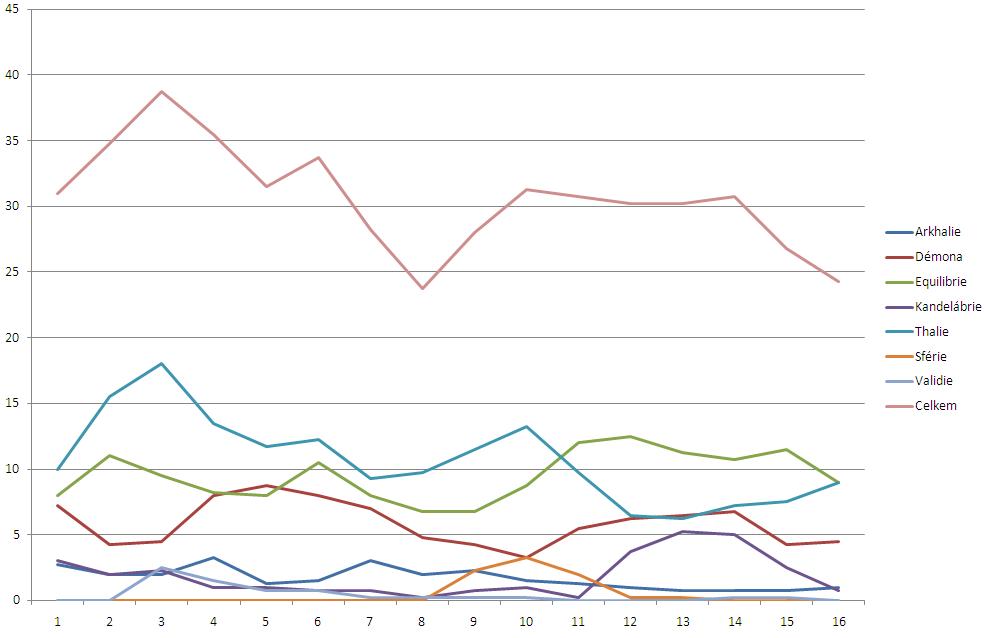 Tak sem si zase hrál Je vidět že Sferie a Validia už jsou na nule, mrtvolky. Něco jak ty tvoje tečky Desmonde Ale Thalie se dostává nahoru. To je ale taky díky pokračujícímu přílivu hráčů z Equilibrie a taky nadšení pro hru po srazu  A taky se blíží konec prázdnin a tak dále. Ale očekávám nárust hráčů na Démoně, ted se tomu tam vcelku věnují a dělají různé věci.