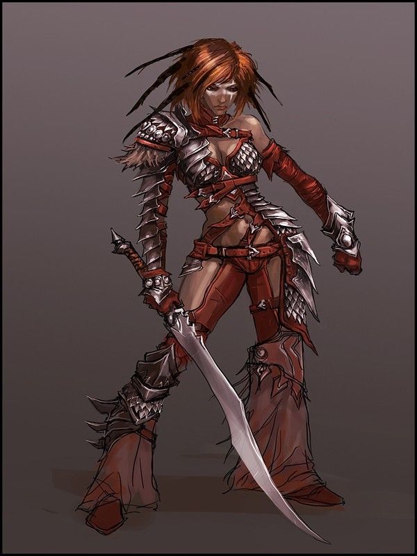 Mireia Chica de Guerra Vasquez - vysoká bojovnice z ciziny s falchionem většinou držící flašku alkoholu - Mireia