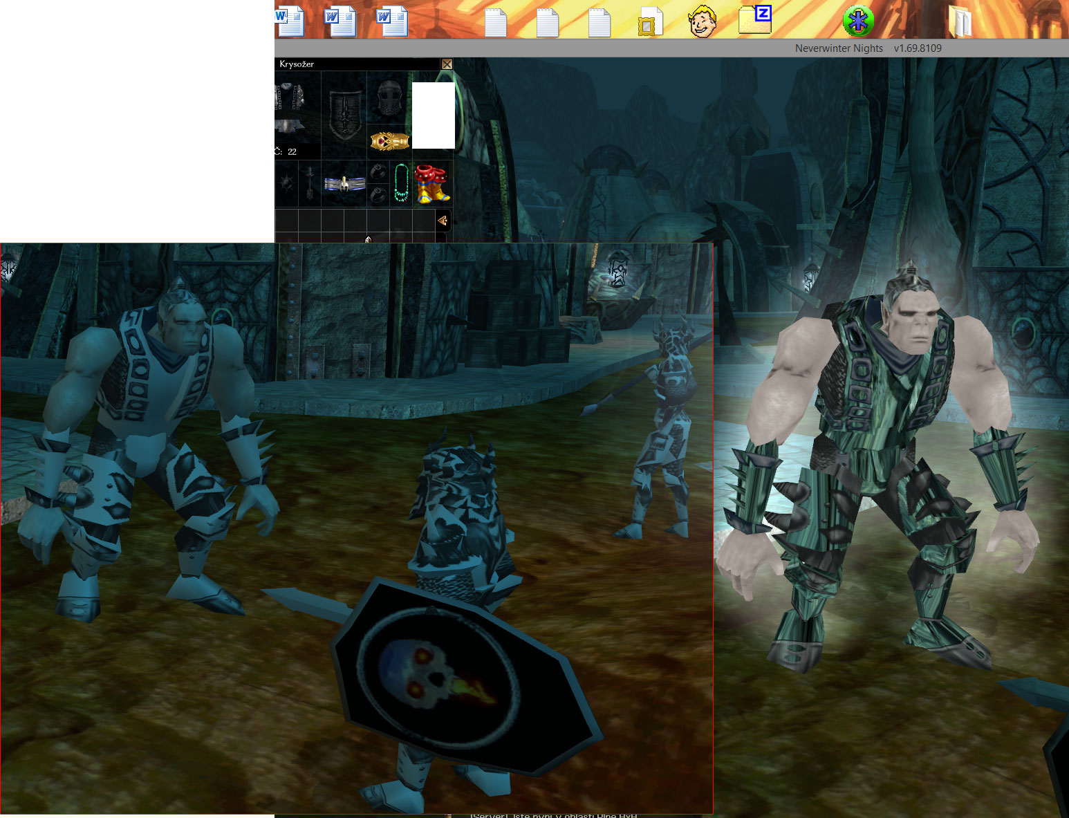 A když jsem zkusil nwn přeinstalovat, tak po čisté instalaci + cep + thalie věci mám rozhašené barvy na postavách (vlasy metalické, oblečení bílé nebo naprosto mimo) a taky modely samotné (tuhle chybí textury, tamhle obrázek pláště v invu, a tak)