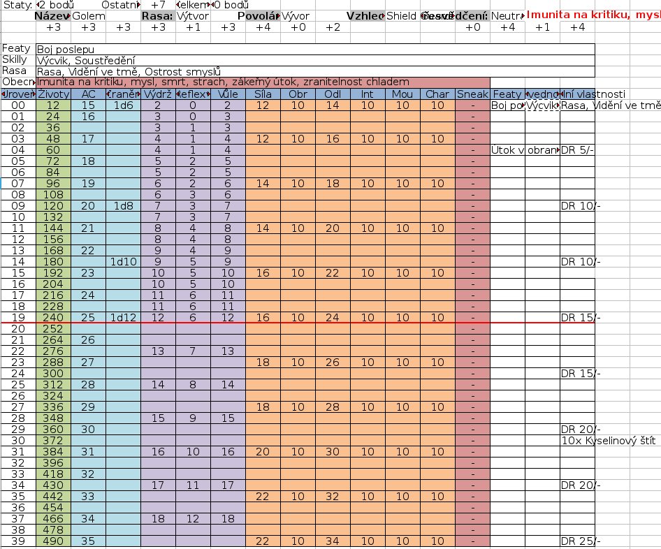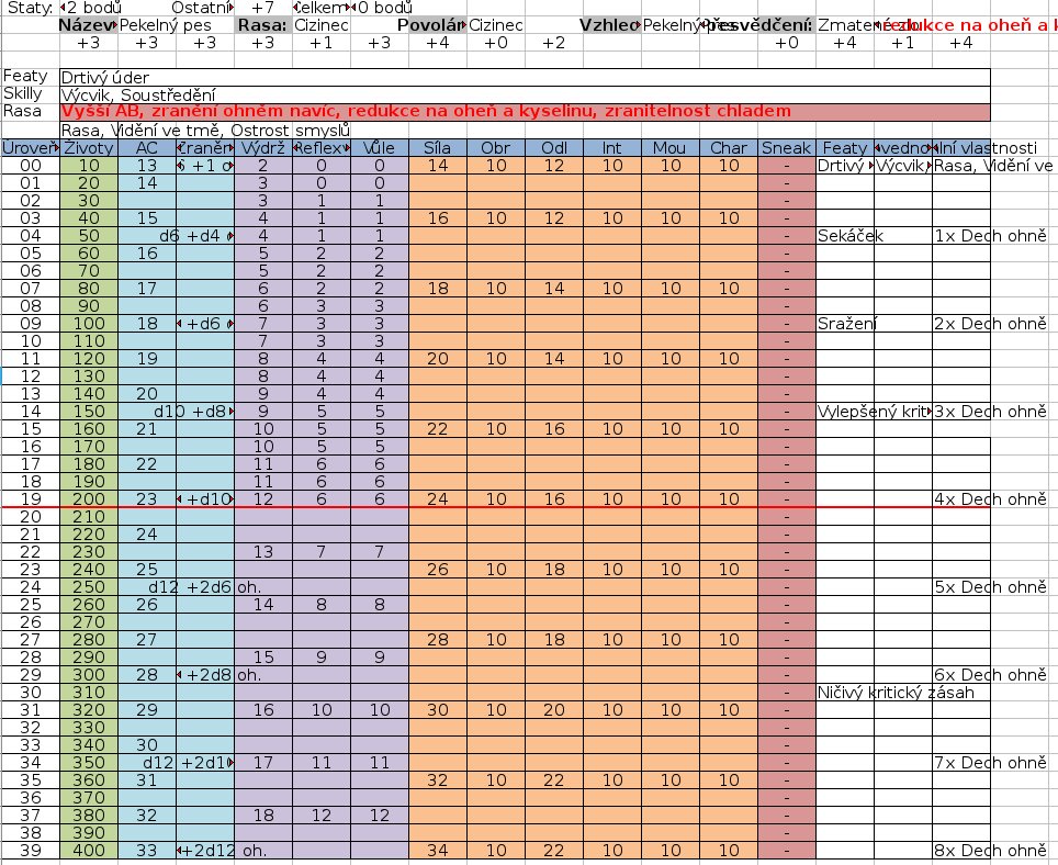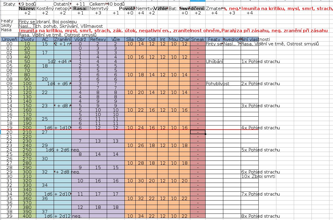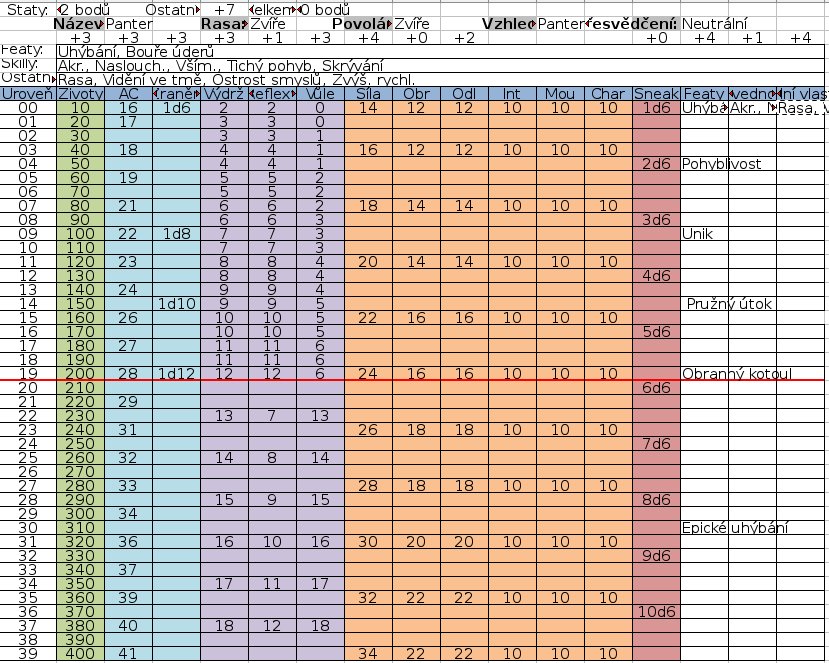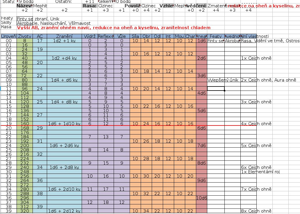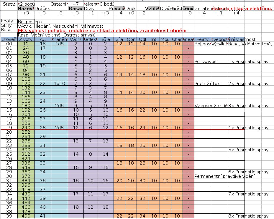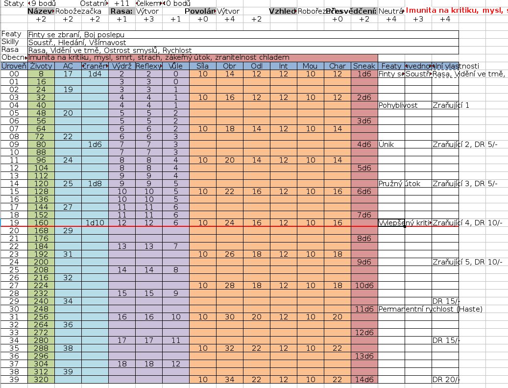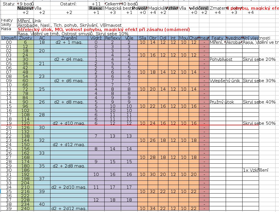 - Dovednostní body: 2 + oprava Int ( (2 + oprava Int) * 4 na 1. úrovni)