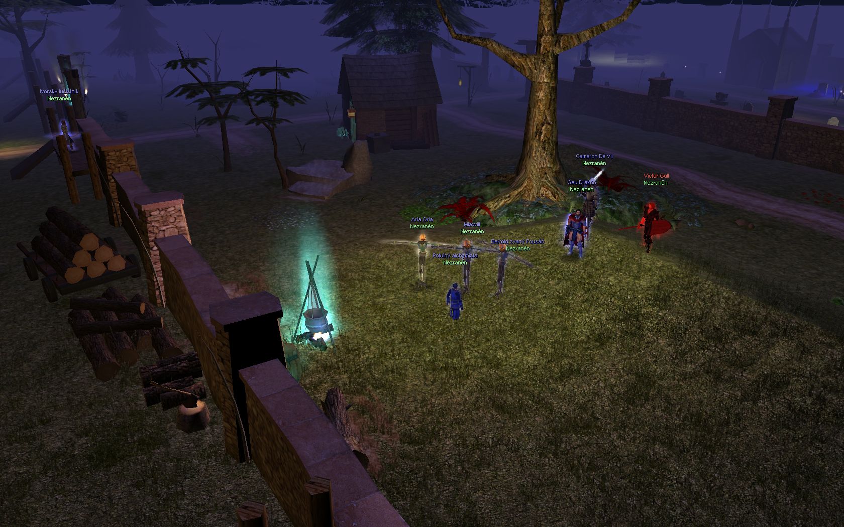 Elf, elfka a Dragin jsou na cestě mezi městem a vesničkou. Elfka toho nese mnoho a tak si na zem položí dřevo a tellem se mě ptá jak se dá věc zahrabat. Já stojím už na druhém konci mapy, čekám až mne ti dva dojdou a zkouším to elfce vysvětlit. Dragin zasahuje jako první. Rozběhne se ode mne (Jeden konec mapy) k dřevu kterého si všiml na zemi (druhý konec mapy) dřevo okamžit čajzne, doběhne zas kemě a povídá "Někdo si tu nechal pěkné dřevo."