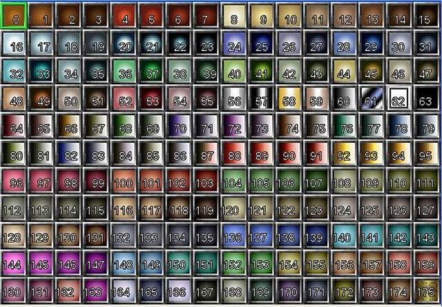 Pro doupravení vzhledu postavy lze v úvodních lokacích užít příkazu na změnu barvy vlasů, kůže a tetování (oči a rty). Zde jsou kdyžtak tabulky: