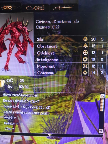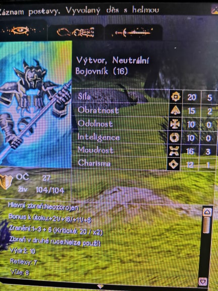 Přikládám obrázky pro pochopení. (má specializace, kritický na velký meč, ale ve výsledku je neozbrojen)