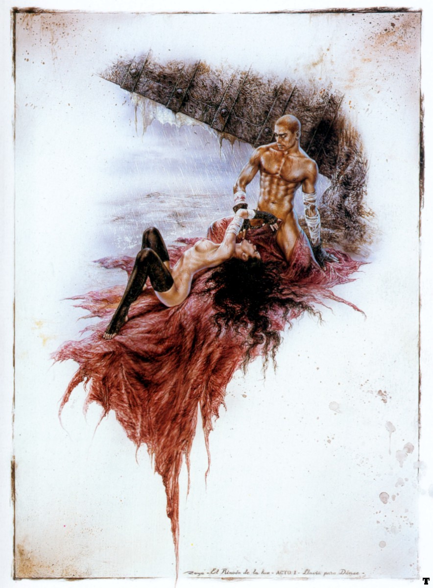 Při těchto slovech se Tobiáš napil pálenky a přesto po té na sucho polkl. Udělal jak mu přikázal. Ti dva se vydali na cestu. Lepšího stopaře si Vincent nemohl vybrat. Toby se ho na nic neptal, dobře dle Vincentova chování poznal, že ho rozum opouští. Pátrání prováděli co nejnápadněji a v převlecích. Bagáž ale měli vždy při sobě a tak je nikde neoznačovali za domácí. Toby za informace chtěl odměňovat zlaťáky, ale Vincent volil krvežíznivější cestu beze svědků. Ach ano, Isabelle byla v tu dobu její krása opravdu prokletím. Její osobu si každý pamatoval, proto nebylo nemožné ji vystopovat. Dopluli do Hag-Graru a potulovali se po místech, kde byli co nejméně nápadní. Tržiště bylo to hlavní místo. "Hledám dívku. Možná už je to delší doba, ale vzpomeň si. Dobře ti zaplatím. Je jí čtrnáct let a tak krásná, že bys jí nepřehlédl." Zachřastil Tobiáš měšcem na obchodníka se svitky a krátce se ohlédl na v helmě zahaleného Vincenta za sebou. "Možná jsem viděl, možná ne." Obchodník nakrčil rameny a tak Toby vytáhl druhý měšec. "Vzpomeň si. Má dlouhé černé vlasy a modré oči. Možná chodí zahalená, ale ty oči...k sakru! Ty bys nepřehlédl!" Obchodník se uchechtl. "Tak to budete muset ponejprve do fronty pánové. Už se mě tu na ní ptali i lacinějš." V tu ránu se Vincent neudržel, odtáhl obchodníka stranou a chytl ho pod bradou. "Jak si to kurva myslel?!Mluv!" Obchodník třeštil oči a nejistě pravil. "Ona, ona....je to kur....prostitutka pane. Nebylo v tom nic osobního. Jen že je nejžádanější, proto jsem se smál. Ale u mě nenakupuje. Chodí s tím svým démonem tady vedle k vetešníkovi. A teď mě pusťte, než mi někdo něco ukradne!" Vincent ho pustil. "Tak s démonem povídal." Zamumlal si Vincent pro sebe. "Pst, pst, hej!Já jí znám." Šeptl na něj zahalený mužík. "Bere si ode mě svoje dávky. No nečuč, drogy chlape." Obchodníček nastavil ruku. Vincent kývl na Tobiáše a ten podal práskači měšec. Zahalený mužík se kysele usmál a pravil. "Každých deset dní za ní chodím se zbožím do pokoje na konci chodby v hospodě U padlýho paladina. " Toby si cosi zapisoval. "Kdy uplyne zas těch deset dní?" Optal se Vincent. "Už pozítří." Vincent se zamyslel. "Tentokrát tam ale nepůjdeš. Měšec navrch, pokud na pár dní vypadneš. "Dva měšce." Smlouval práskač. "Ujednáno. A co to vlastně za svinstvo máš? Že ho ani na ulici neprodáš." Obchodníček ukázal nabídku. "Ale klidně na ulici. To spíš ta šťavňaťoučká holčina asi nechce aby to věděl ten její křídlatej. Krom toho pokoje je jinak furt s ním." Vincent se zamračil. "Prodej mi něco!" Obchodník se kysele zašklíbl. "Pro vás to nejlepší hošánci." Víc pro tuto chvíli Vincent už nechtěl vědět. Jen zaskřípal zubama a koupil několik omamných bylin. "Pozítří tam zajdeš místo něj s nabídkou těhle sraček." Hodil Tobiášovi byliny. "Zjistíš zda je to můj andílek. Nechce se mi věřit že....že....sakra uděláš prostě, co ti říkám!" Toby porozuměl chytrému plánu. Však ho Isa nikdy neviděla. Po dva dny byli spolu zavřeni v jedné místnosti. Vincent neustále omýval tu stejnou písničku o jeho andělovi. Buď hladil zrcátko nebo jílec meče. Tobiáš z něj měl čím dál větší strach. I byl rád, že nastal čas a on vyšel z pokoje, přes hlavní chodbu, do posledního na konci chodby. Byla opravdu tam a opravdu tak krásná, jak mu Vincent tvrdil. Nyní už věděl, proč pro ní Vinc ztratil hlavu i rozum. Na chvíli zapoměl mluvit. Seděla uvelebeně na posteli v černém postroji kurtizány a hleděla na něj. Attachment: