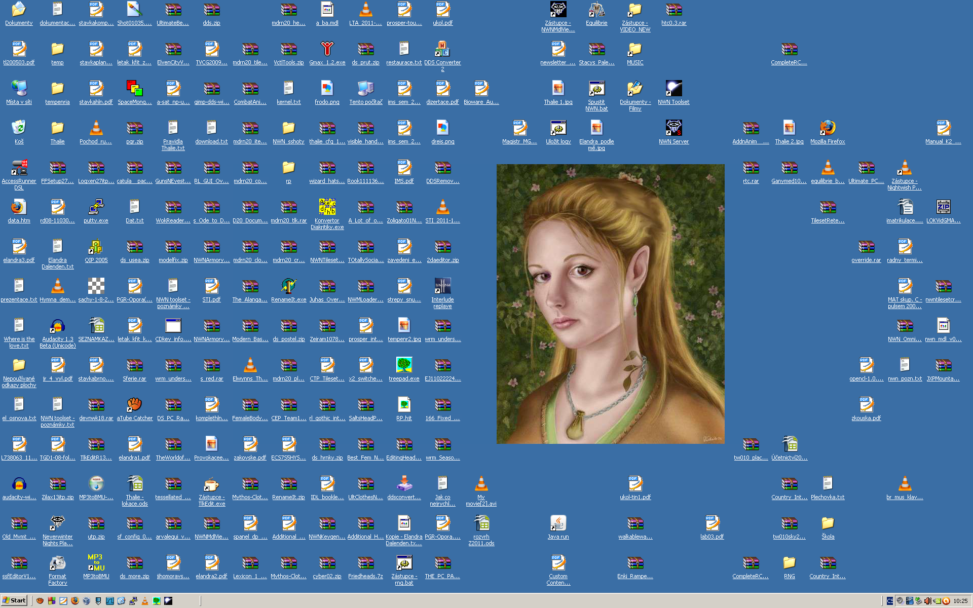 Moje aktuální plocha po úklidu nepotřebných ikon (zase jednou po roce  ). Wallpaper na pozadí je dílem Amber a moc pěkně se na něj kouká  !