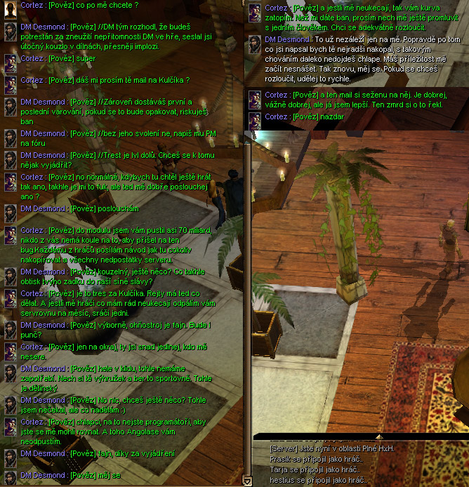 Zneužití nepřítomnosti DM ve hře. * Konkrétně souboj v přátelské oblasti - na plující lodi.
