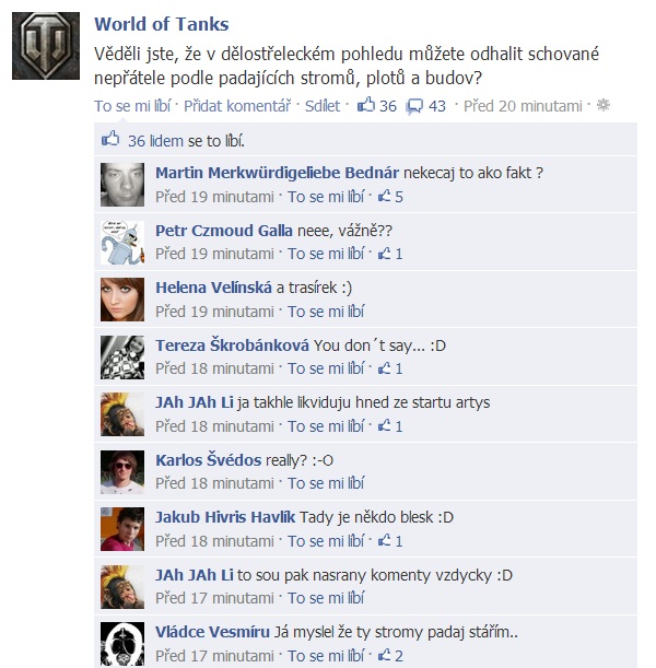 Theogil I wrote: Tak jsem nakonec koupil TIGRA a s politováním musím říct, že ani na 6 pokus jsem včera večer nevyhrál a tudíž nevyjel double. Finančně mě taky tak trochu zrujnoval a tak se budu modlit aby se časem velmi významně zlepšil.  Ani se nedivím, včerejšek byl nějaký začarovaný, taky jsme hodně prohrávali s T29. Víkendy takové bývají normálně  . Ale hodně se mi líbila naše taktika v četě hlavně proti silnějším soupeřům  Jeden střílí nepříteli do pásů a druhý ho prostřeluje do slabých míst.  Ta bezmoc soupeře je drsná.