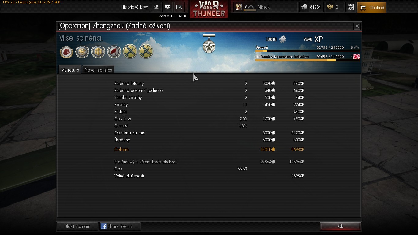 A i přes nepříznivé připojejí, které nevím čeho je důsledkem, se mi v některých bitvách i celkem daří. Ted naposled jsem vyhrál celou bitvu sám! Měl jsem svůj největší letoun a začínám ho mít fakt rád díky jeho dvacítce na zadečku. To ona vyhrála tu bitvu  Attachment: