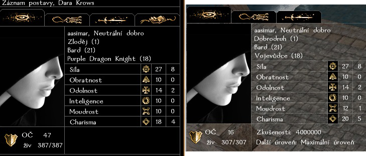Vytvořím aasimara s charismou 16 a moudrostí 8, po nalognutí do hry se upraví na char 18 a wis 10, ovšem po druhém lognutí se opět přičte +2 k char a wis. Attachment: